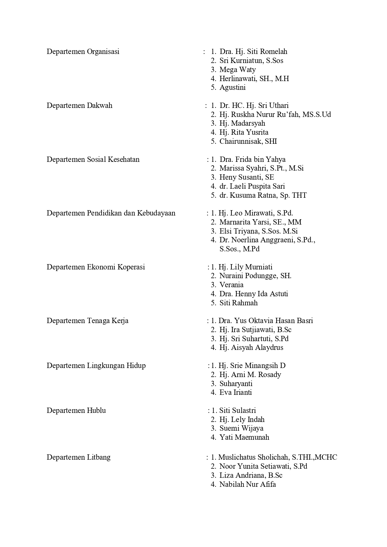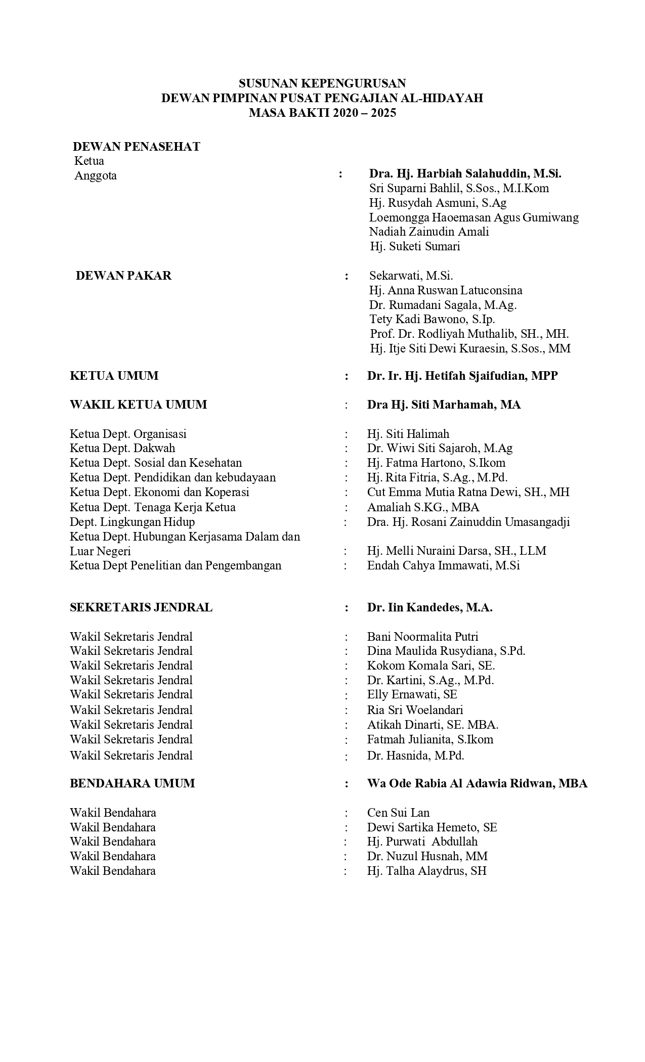• Susunan Pengurus